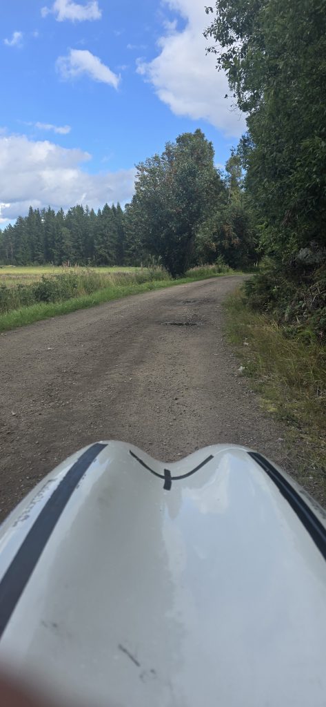 wurde wieder zu einer Schotterpiste. Eine Schwedin sah, dass ich ein Problem hatte und sage, dass die E4 bis Gnarp ohne Mittelleitplanke, also fahrbar sei.