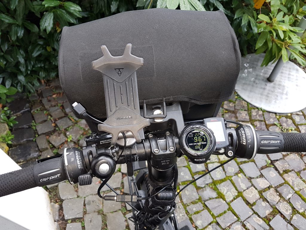 Die Fixierung eines Samsung S7 ist durch ein Topeak Omni Ride Case mit Halterung sichergestellt.