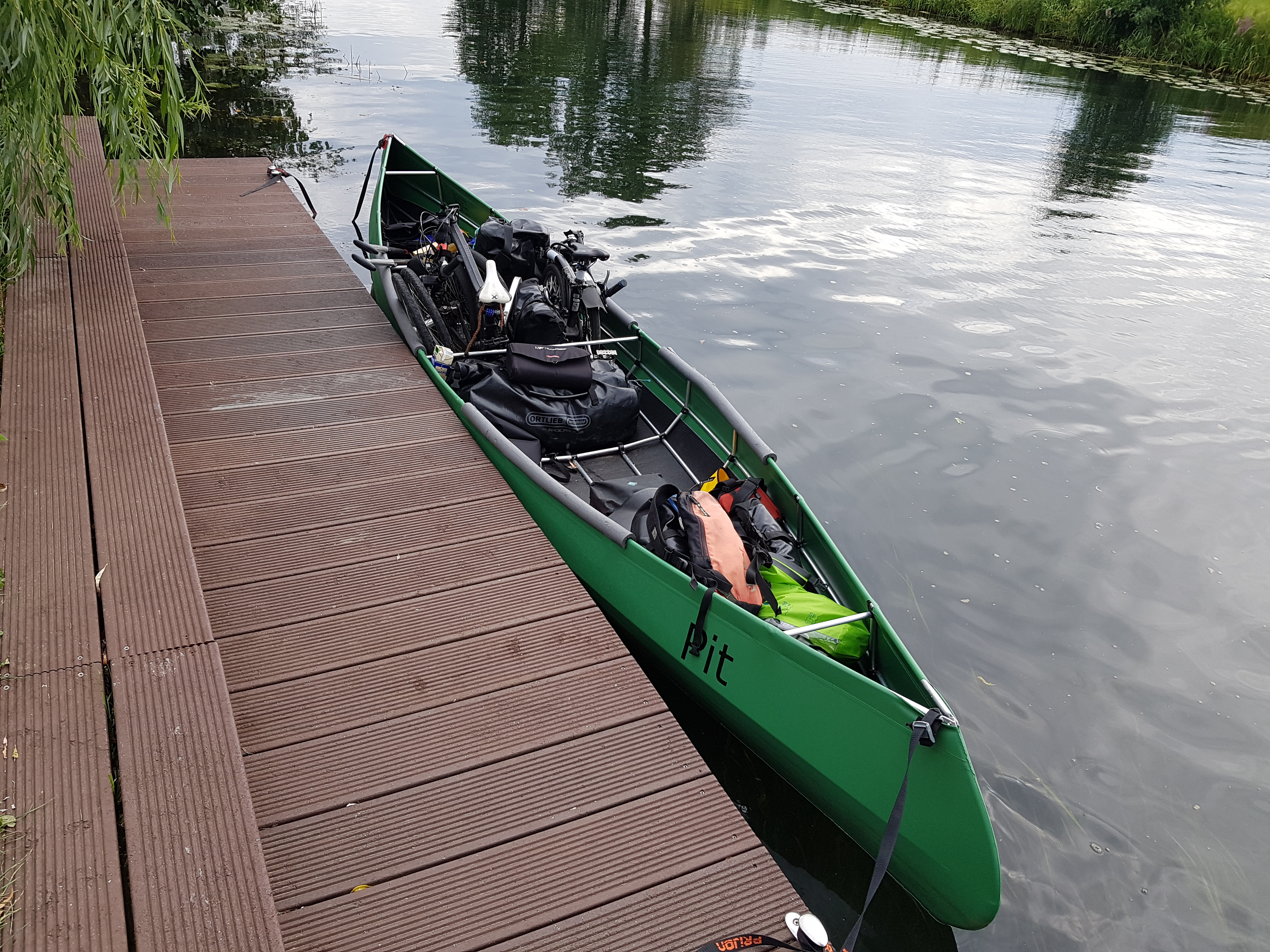 Wir bepacken unseren Ally erstmals mit dem gesamten Gepäck. D.h., dass 2 Fahrräder, 6 Fahrrad-Packtaschen, 2 große Packtaschen, 2 Lenkertaschen und allerlei Kleinkram im Boot verstaut werden müssen.