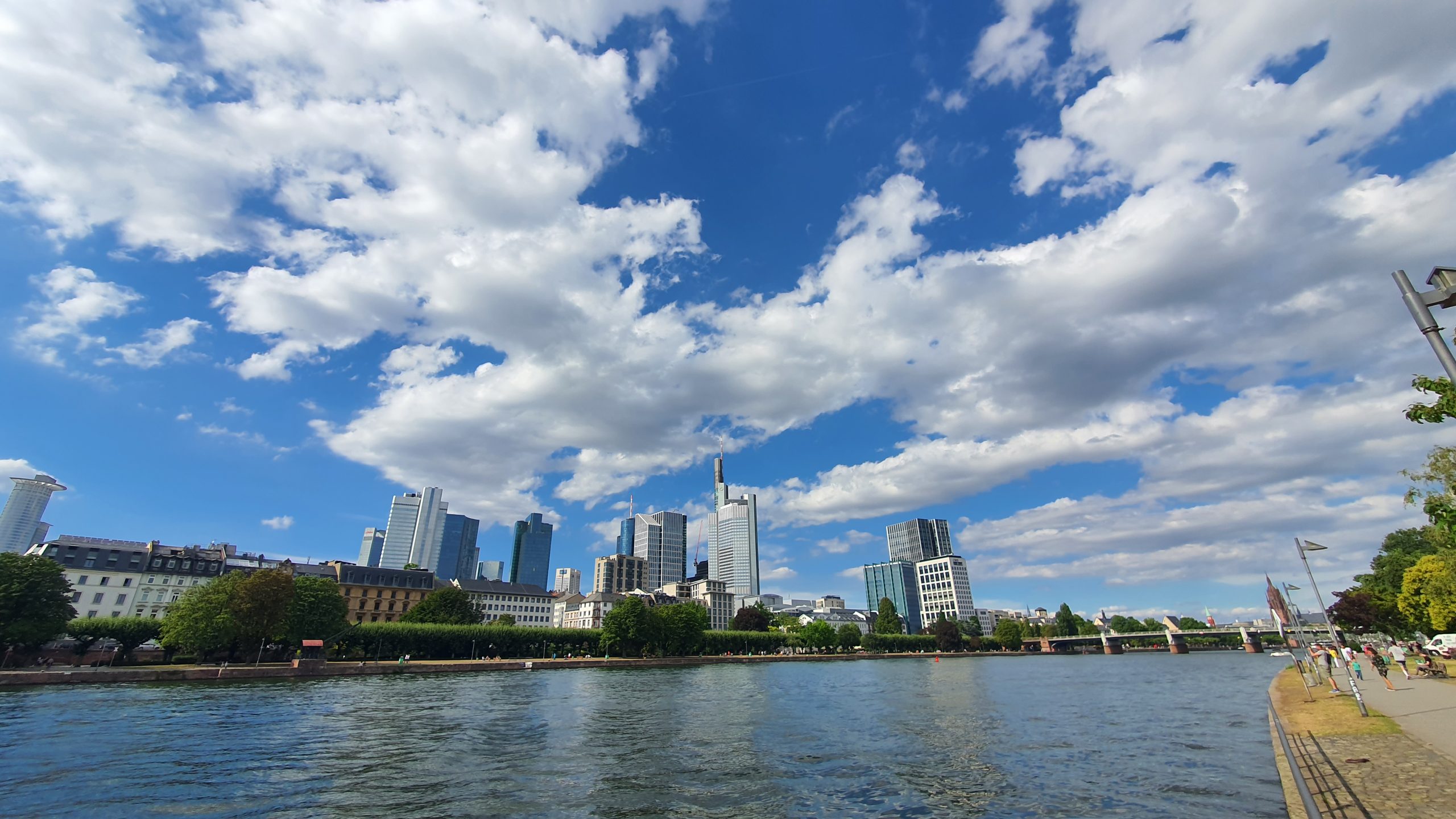 Entlang des Mains verläuft die Strecke zunächst nach Frankfurt. Die Höhendifferenzen sind minimal, aber es herrscht Gegenwind.