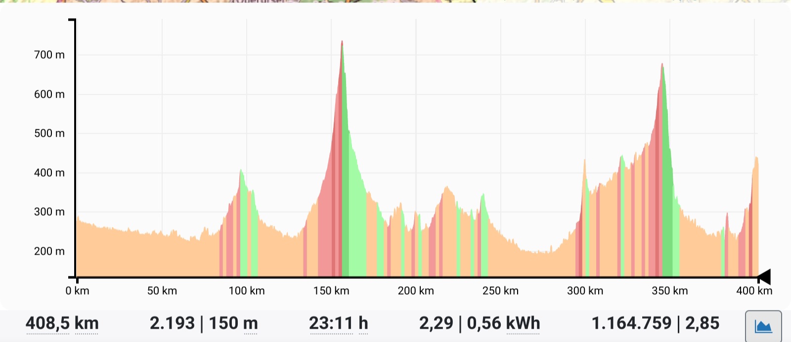 Die Strecke verläuft von Berchtesgaden nach Erlangen, über Salzburg, Waging am See, Mühldorf, Moosburg, Neustadt a.d. Donau, Riedenburg, Beilngies und Nürnberg. Es ist mittlerweile nichts Besonderes für mich 360km an einem Tag zurückzulegen.