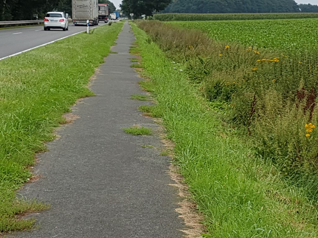 Radweg zwischen Syke und Nienburg an der B6. Kurzwellige Absenkungen sind auf dem Foto nicht sichtbar.