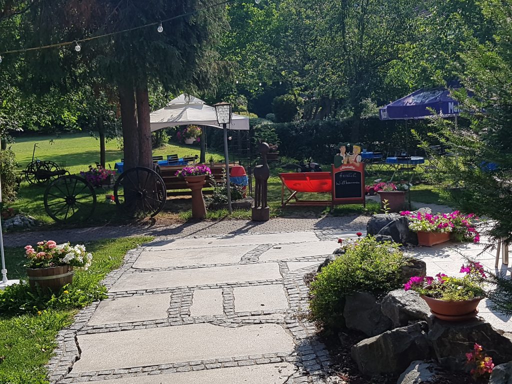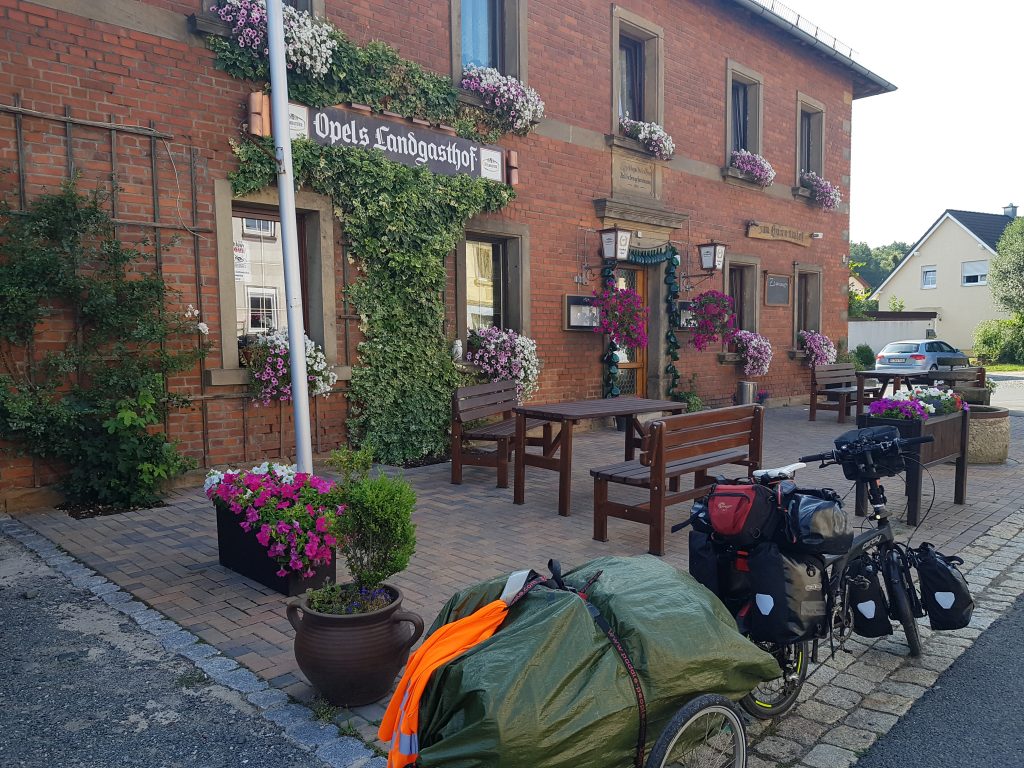 Wir legen mehr als 60km zurück und finden in Glashütten bei Mistelgau, kurz vor Bayreuth, einen einfachen, aber gemütlichen Landgasthof mit Biergarten zur Übernachtung.