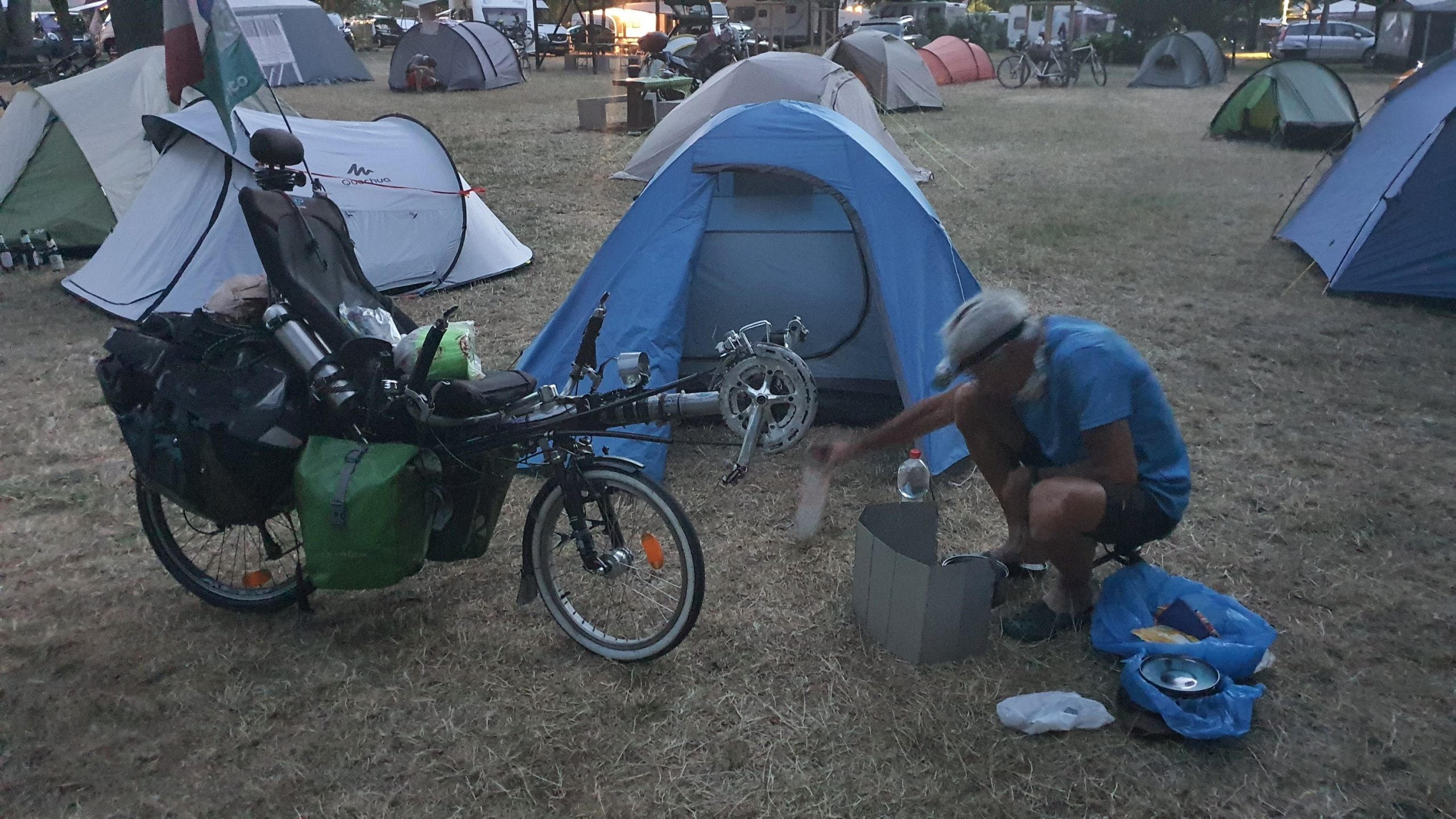 Ich treffe dort auf einen freundlichen, älteren, französischen Weltumradler, der ebenfalls mit einem Liegerad unterwegs ist. Natürlich ist seine Gepäcklast von ganz anderem Format!!