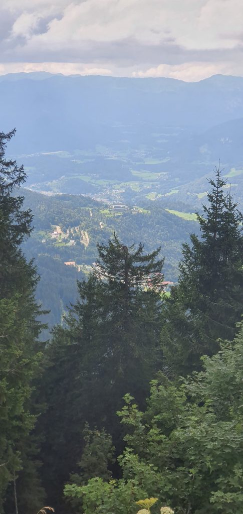 In 1600m üNN ist es kühl! Ich bin froh 2 warme Jacken dabei zu haben. Bei der „Gipfelrast“ erfreue ich mich an der schönen Aussicht nach Österreich auf das Tennengebirge und ins Berchtesgadener Land. Der Hohe Göll ist wolkenverhüllt.