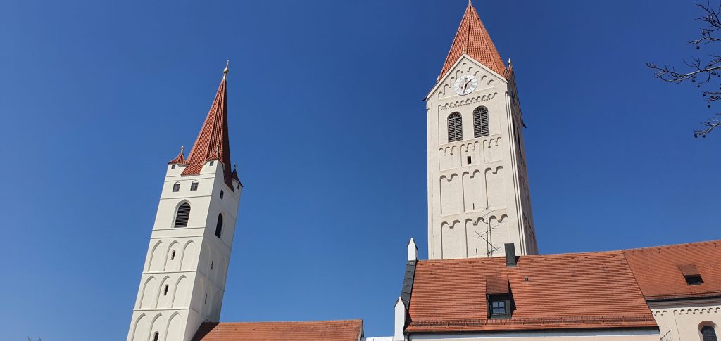 Mittagspause in Moosburg. Der untere Teil des Münsters ist leider mit einem Gerüst versehen.